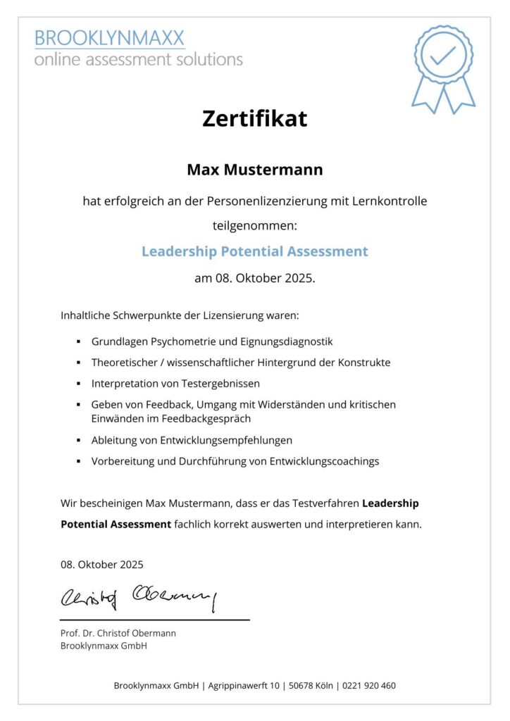 Leadership Potential Assessment: Zertifizierung
